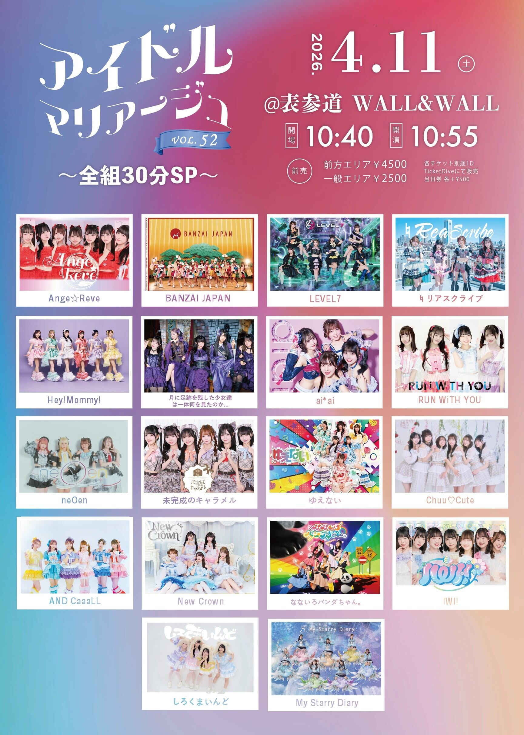 【4/11(土)】アイドルマリアージュVol.52~全組30分SP~』@表参道WALL&WALL リモートチェキ