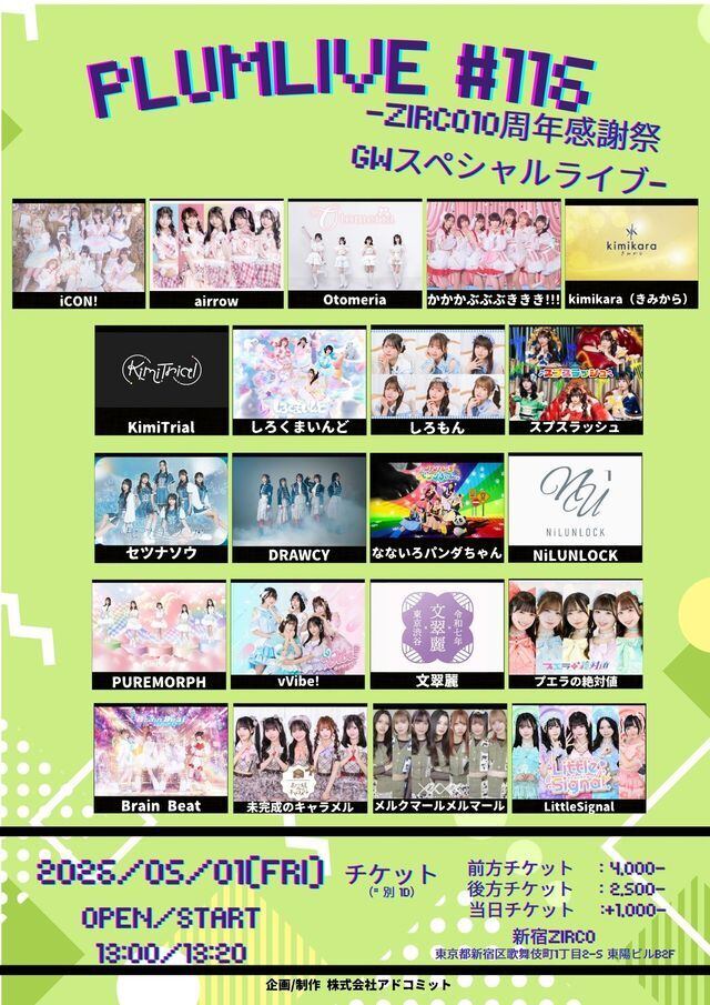 【5/1(金)】『PLUMLIVE#116ーZirco10周年感謝祭GWスペシャルライブー』@ZircoTokyo リモートチェキ
